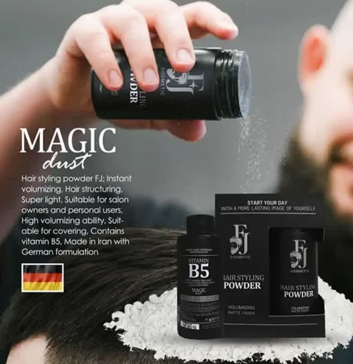 پودر حالت دهنده مو اف جی fj حجم 10 گرم با فرمولاسیونی آلمانی و کیفیتی فوق العاده که حجم دهنده بسیار خوبی برای موهای شما میباشد. این پودر که حاوی ویتامین b۵ و عصاره آلوئه ورا است فوق العاده سبک و مناسب برای مصرف شخصی و آرایشگرها می باشد.
